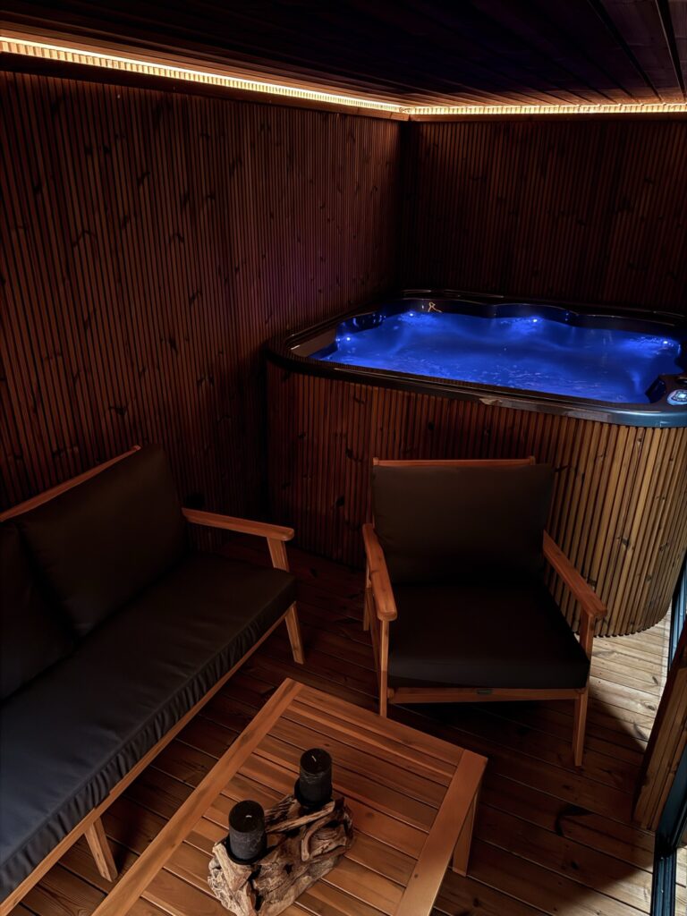 Prosklené stěny, teplé LED osvětlení a přírodní materiály činí každou chvíli strávenou v altánu výjimečnou. Je to místo, kde můžete opravdu zpomalit.