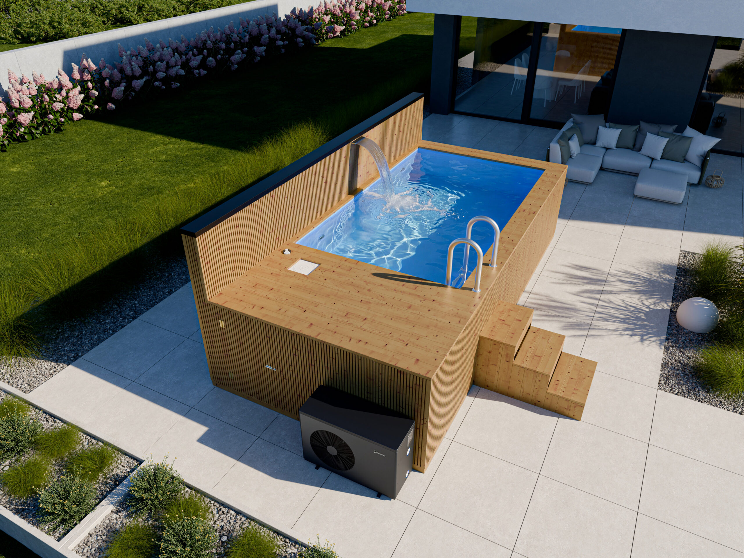 Vysoký standard konstrukce zahradního bazénu s protiproudem