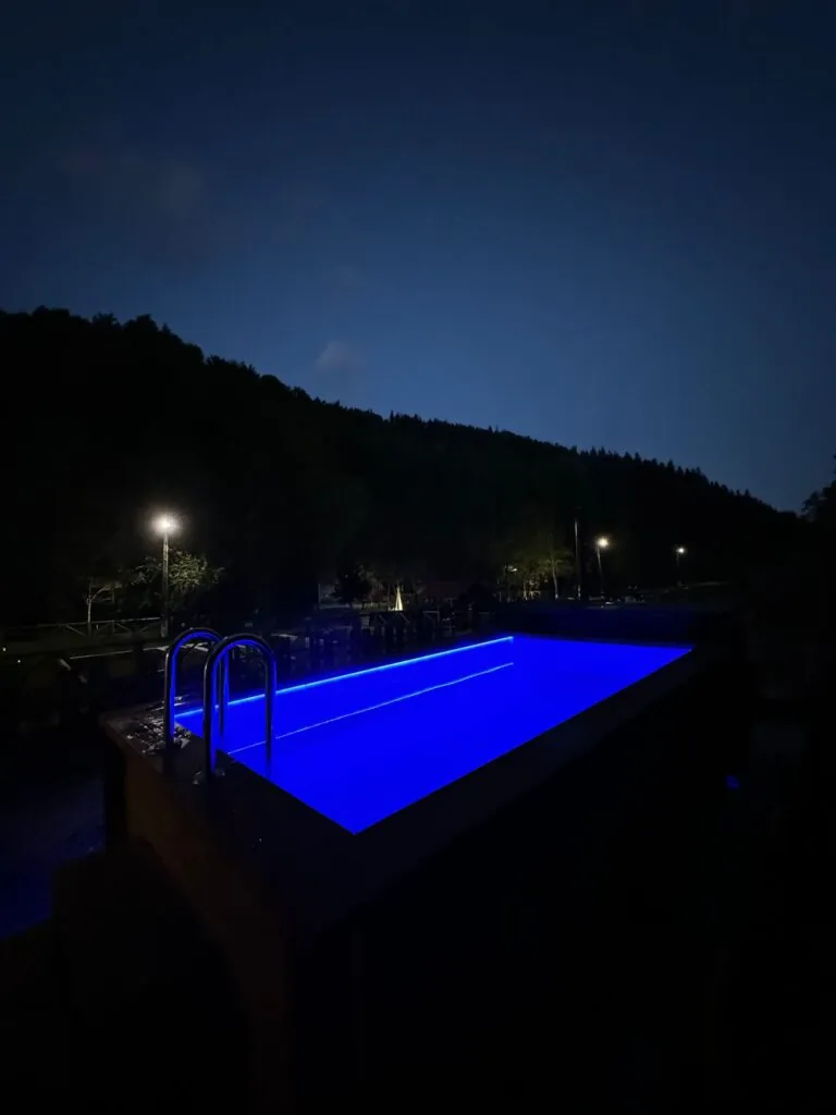 Postarejte se o příjemnou atmosféru a bezpečnost koupání po setmění výběrem vhodného osvětlení, které bude odpovídat velikosti a stylu bazénu.