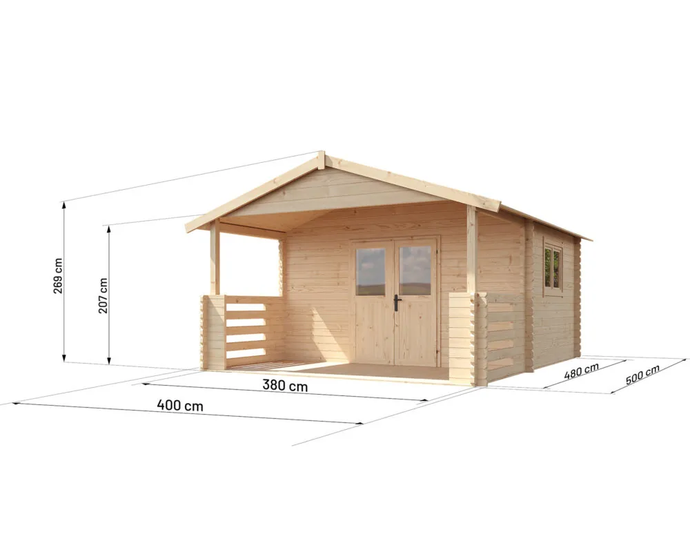 Ručně vykonaný ze smrkového dřeva z polských lesů, vlhkost dřeva 18%. Součástí objektu je terasa a základní vybavení. Domek od A&M bude skvěle fungovat na pozemku, na zahradě i jako nocleh.