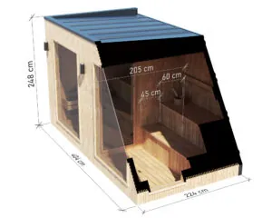 Relaxovat můžete sami nebo se svými blízkými. Bez ohledu na to, zda preferujete trávit čas sami se sebou nebo s rodinou, v Sauně Thermo Premium můžete odpočívat po svém. S plochou 2,2 m x 4 m je dostatečně prostorná, aby bez problémů pojala 4 až 6 osob. Pokud však dáváte přednost resetování o samotě, můžete během relace počítat se soukromím. Umožňuje to silná přední stěna, která je tónovaná tvrzeným sklem. Díky němu můžete volně pozorovat okolí a doufat při tom, že si Vás uvnitř sauny nikdo nevšimne.