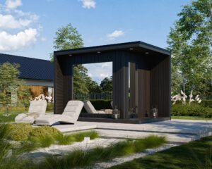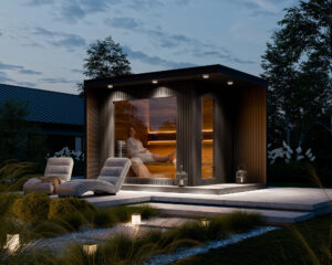 Tato sauna se dokonale hodí do moderních zahrad, na terasy nebo do relaxačních zón u rodinných domů či chat.
