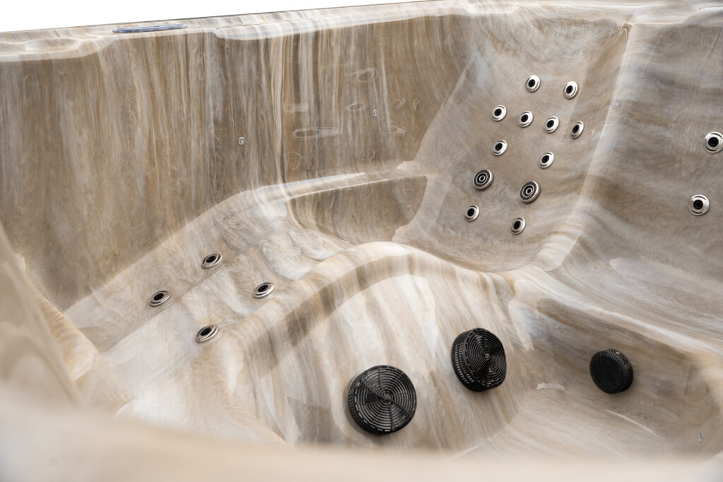 Vnitřek naší vany SPA je vyroben z nejkvalitnějšího akrylu, který se vyznačuje výjimečnou hladkostí a odolností proti odbarvení a působení bazénových chemikálií. Ergonomicky navržené vany zajišťují maximální pohodlí při koupeli a jejich odolnost zaručuje dokonalý vzhled zařízení po dlouhá léta.