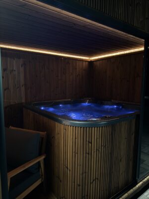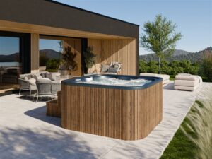 Celá vířivka je ukryta v elegantním plášti z termo dřeva, které působí velmi esteticky a zároveň je vysoce odolné vůči jakýmkoliv povětrnostním podmínkám, vlhkosti a teplotním výkyvům.
